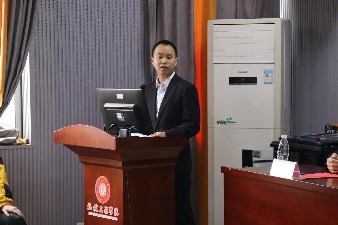 经理姚齐水首先致辞,他对同学们的热忱和努力表示肯定,并祝贺同学们圆梦工大,成为湖工大的一份子。此外提出了大学之道、机械之光、家国情怀三个话题, 并向我们说明了机械的含义:机械是手中的工具、工业的基础、文明的起点,希望大家能在英才汇聚的大学里找到自己的道路,充分利用学校资源提升自己,培养忠实的家国情怀和精益的专业情怀,坚定地朝着目标奋斗终生