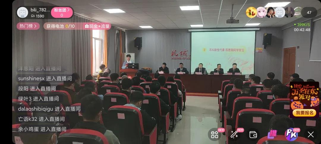 应疫情防控要求,本次见面会在哔哩哔哩网站同步直播,除了在会场的新生代表外,其余新生以及新生家长们都通过线上平台观看,本次大会由孙晓副经理主持。