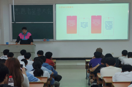 大会开始,青志联代表从志愿者的定义、精神、服务理念和服务宗旨介绍志愿者。随后,开始讲解志愿活动对社会和个人的意义,以及作为志愿者的注意事项。最后由青志联成员带领同学们进行庄严的志愿者宣誓,合唱志愿者之歌,此次大会圆满结束。